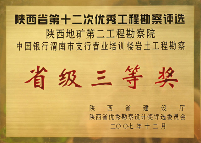 省第十二次優(yōu)秀工程勘察評(píng)選省級(jí)三等獎(jiǎng)